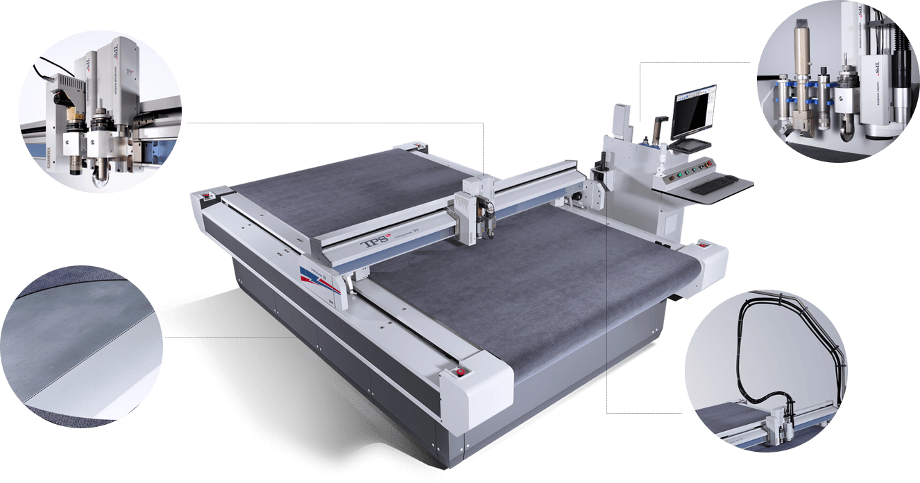 泰谱圣数码切割机主要针对非金属柔性材料异形裁切,采用自主研发的CAM切割软件及智能套料排版软件,配置振动刀、气动刀、轮切刀、压痕刀、绘画笔、铣刀等多样化刀具,可快速完成全切、半切、镂铣、打孔、折痕、标记、识别轮廓裁切等各类工艺,解决异形图画裁剪难题!机器广泛适用于广告、密封件、皮具制鞋、复合材料、汽车内饰、服装、地毯地垫等行业,根据不同的切割材料,灵活配置不同的刀具,实现一机多用的特点。